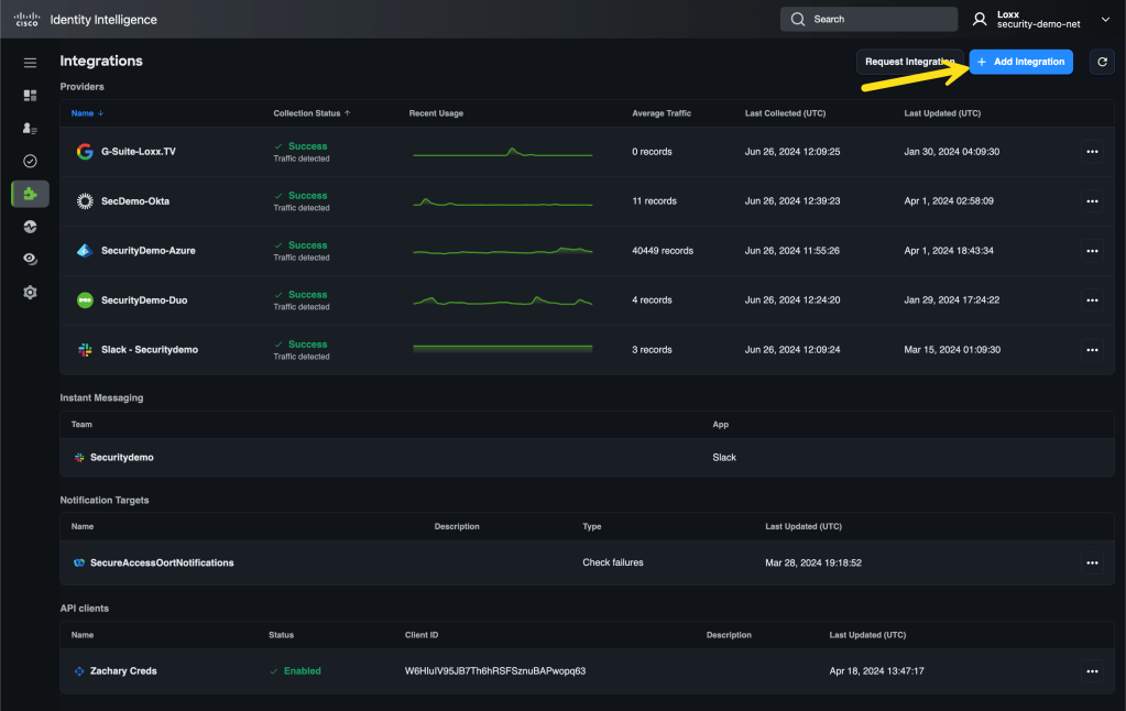 From the CII dashboard, navigate to Integrations and click Add Integration.
